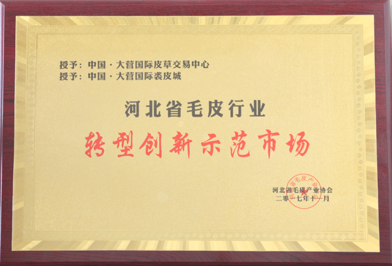 • 中國·大營國際皮草交易中心 中國·大營國際裘皮城 榮獲 河北省毛皮行業轉型創新示范市場