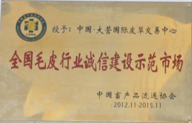 • 中國·大營國際皮草交易中心榮獲 全國皮毛行業誠信建設示范市場