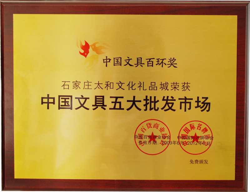 • 太和文化禮品城榮獲 中國文具五大批發市場